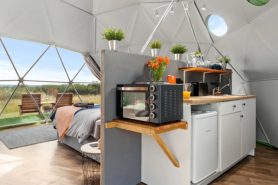 Unleash your imagination when designing your perfect glamping dome. With a plethora of customization options, you can create a space that reflects your unique vision and style. Choose from various sizes, colors, interior layouts, and additional features to make your dome truly one-of-a-kind.